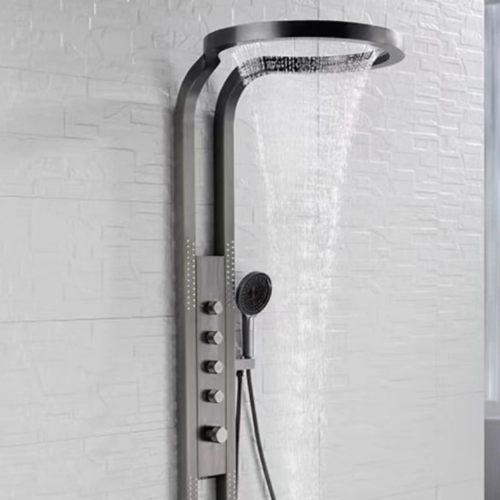 Colonne de panneau de douche en Nickel brossé, pomme de douche pluie et cascade, Jets de Massage, mitigeur chaud et froid, robinet de salle de bains et de douche