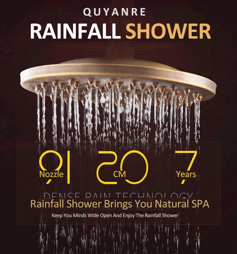 • Name: Quyanre Antique Brass Shower Faucets Set 8 » Rainfall Shower Head Comm