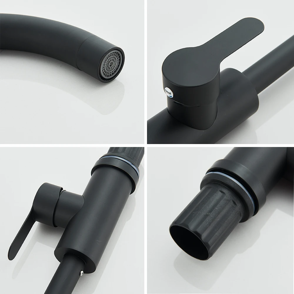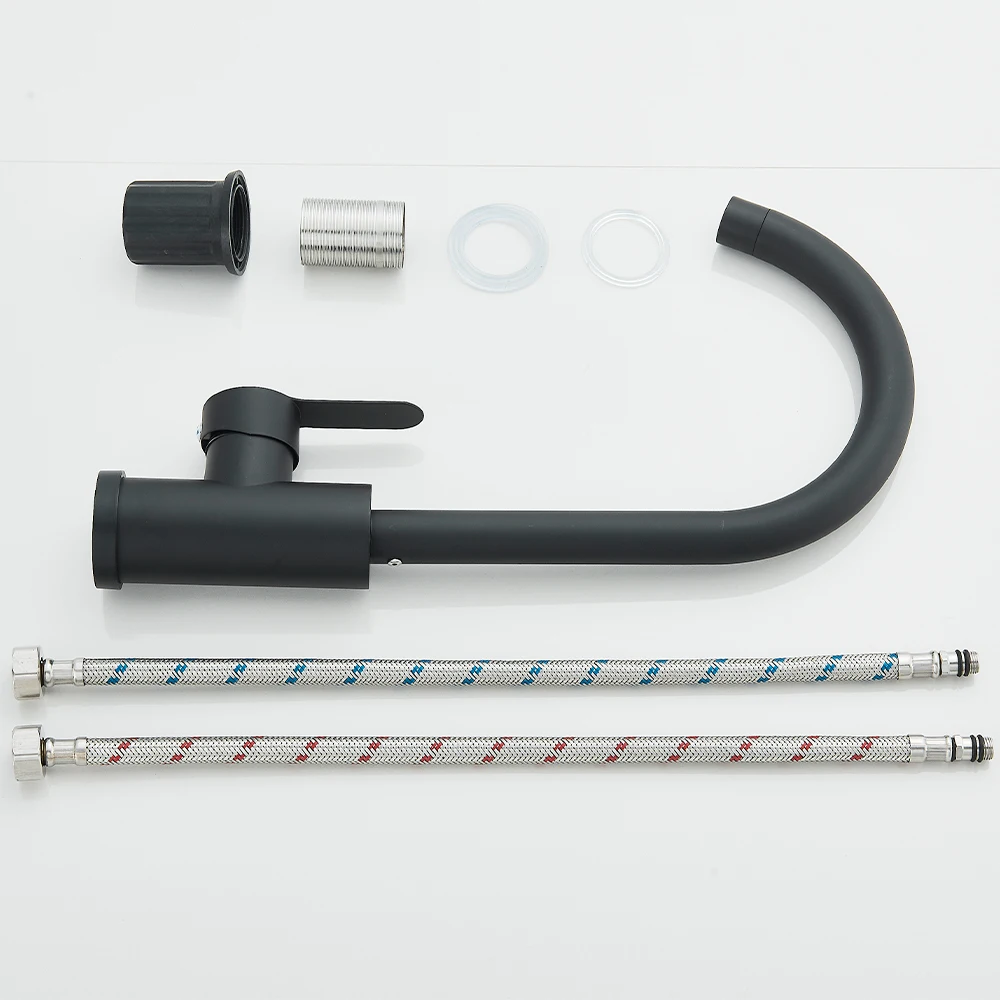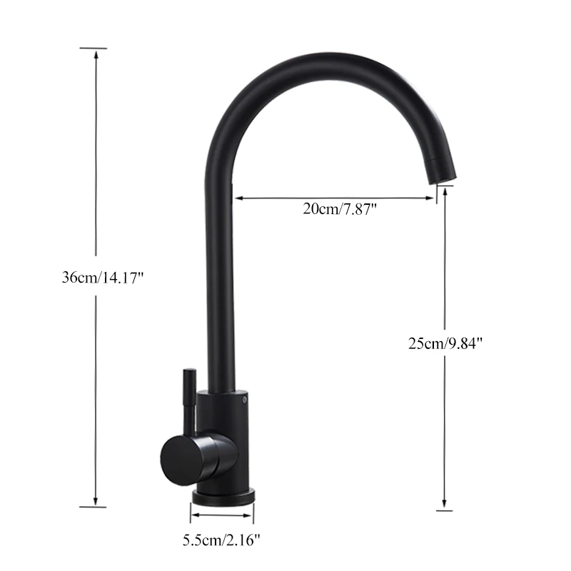 Home » Boutique » Robinet de cuisine noir en acier inoxydable, mitigeur d’eau froide et chaude à poignée unique, grue de cuisine à montage sur pont